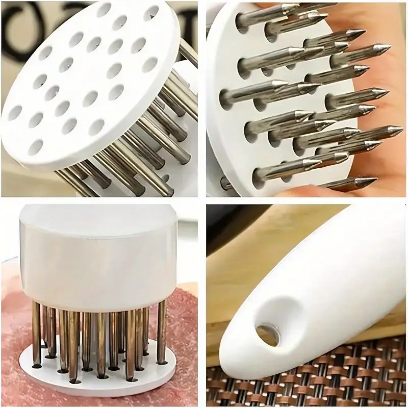 Dual-Function Tool: One end features tenderizing needles, while the other functions as a hammer to help soften meat, making it easier to marinate and cook evenly.