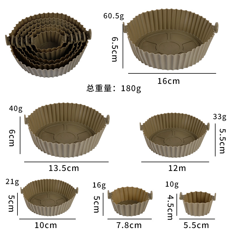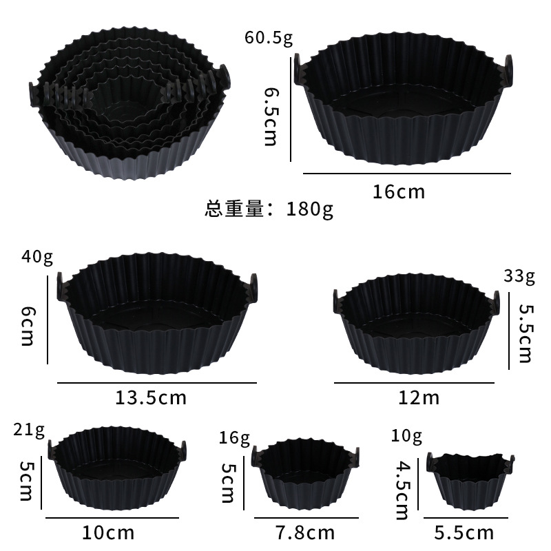 • Air fryer silicone baking tray reusable made of food-grade silicone soft material good heat resistance and the operating temperature of -40°C-240°C.