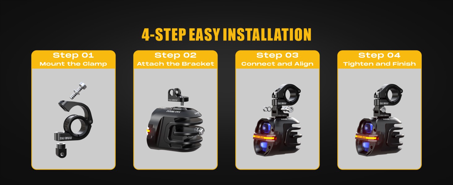 🔧 Universal Fit, Effortless Setup: Includes a 360° adjustable bracket for easy mounting on crash bars (0.7" - 1.25" diameter). Simple plug-and-play wiring with a dedicated control switch allows quick access to all lighting functions. Syncs seamlessly with your high beam and features one-touch power-off.